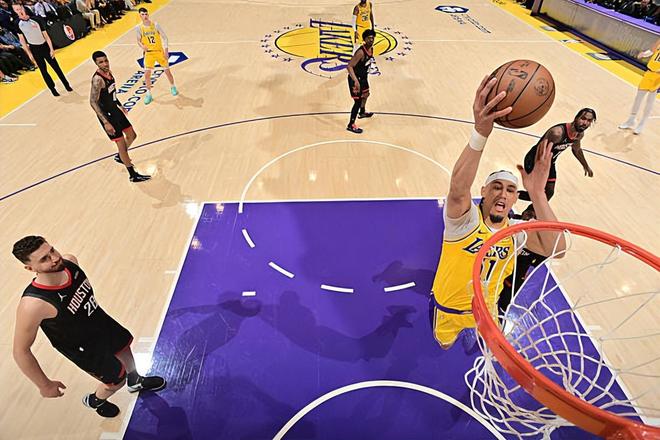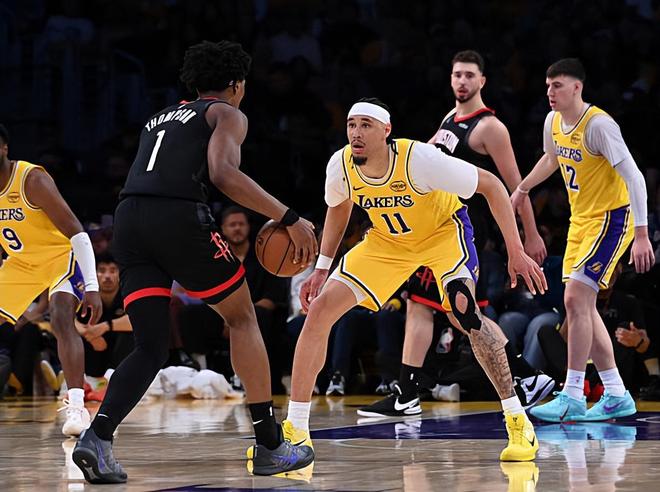 本场比赛中,湖人虽然取得了比赛的胜利,但是球队的替补中锋贾克森-海斯(Jaxson Hayes)的表现显然是不太理想的。海斯全场出场12分40秒,投篮1中1,罚球3中2,得到了4分1篮板1盖帽的数据,还有1次失误和4次犯规,正负值为+2。海斯在进攻端并没有展现出足够的实力,并没有得到更多的分数,也没有发挥出自己在无球移动以及内线终结方面的能力。海斯在进攻端表现不佳也就算了,最关键的是,他在防守端的表现令人非常失望。海斯在本场比赛中算是将自己在防守意识方面的弱点暴露无遗。相比于德安德烈-艾顿(DeAndre Ayton),海斯对于阿尔佩伦-申京(Alperen Sengun)的防守实在是非常糟糕,被申京打了好几个球。要不是有海斯,申京在本场比赛中的表现只会更加狼狈。除此之外,海斯还出现了大量的犯规,他在防守端真是显得非常狼狈。